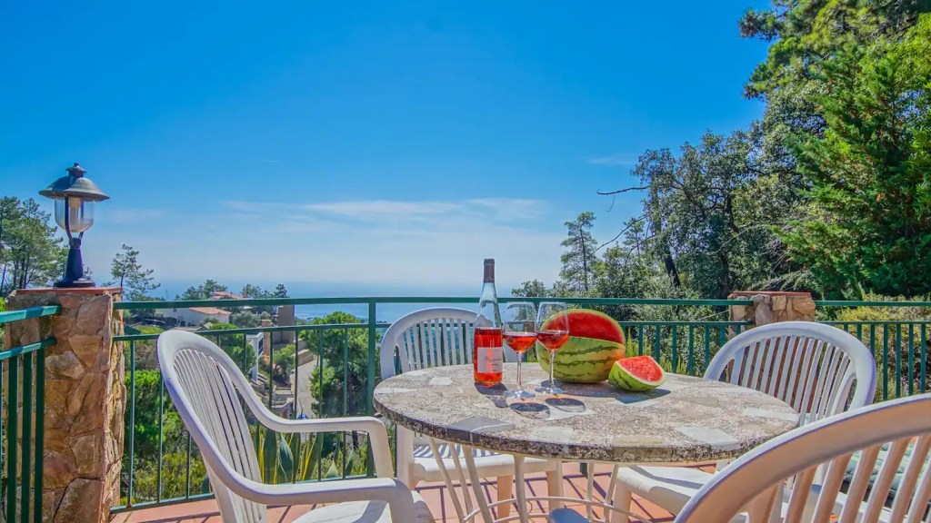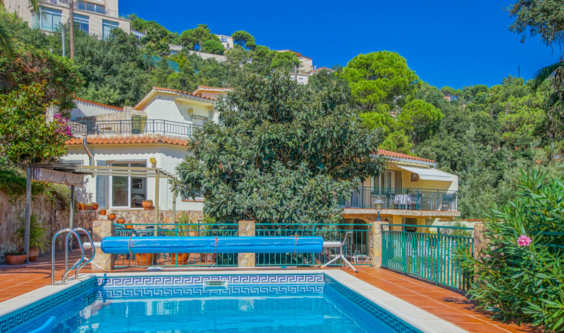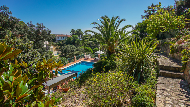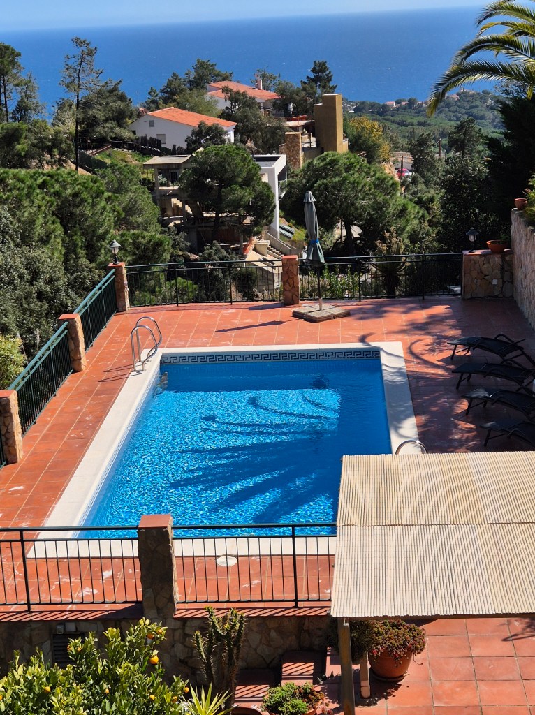 Am Pool befindet sich eine Außendusche und eine überdachte Sitzgruppe, von der der liebevoll gestaltete Garten, der Pool und Meerblick genossen werden kann.
