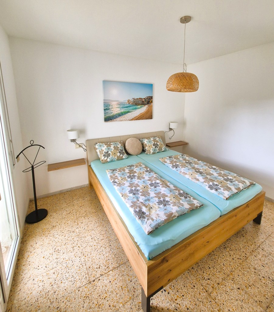 Im zweiten Schlafzimmer befindet sich ein weiteres Doppelbett (180x200cm) sowie ein Wandschrank, dieses liegt zur kühlen Hangseite zugewandt.